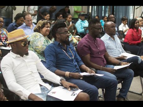 From left: OMI, Beenie Man, Ity and Kevin Downswell at the handing over of much needed medical equipment to the Bustamante Hospital For Children on Wednesday.
