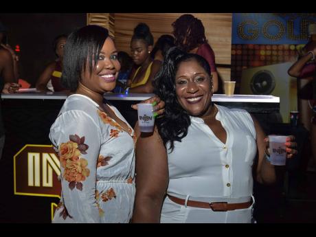 Party pals Shana-Kay Salmon (left) and Gloria Barrett are all smiles as they enjoy their INJ!N mixes.