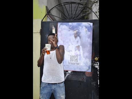 Showayne Blair stands beside a poster honouring the late Rossi 'The Standpipe Prince'.