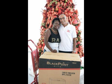 Contributed 24-year-old Christal Harriot collects her brand new freezer from Digicel's Director of Customer Solutions, Patrick King at the Digicel Headquarters in downtown Kingston.