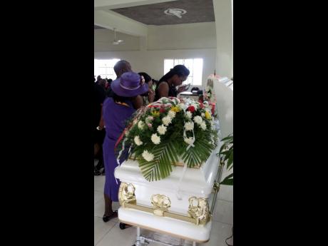 George Henry Mourners taking a last look at the body of Beverley Daley, inside the Sanguinetti New Testament Church of God.