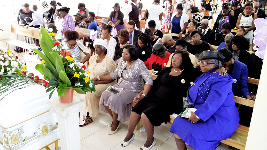Mourners pay their last respect to Nena Wilkinson at the Sanguinetti New Testament Church of God.