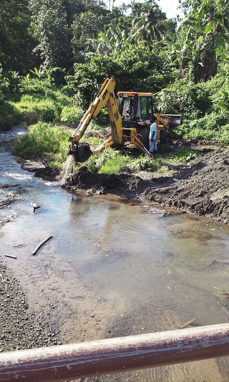 Yesterday, heavy-duty equipment, in the form of a back-hoe, was removing silt and other debris from the nearby river at Sea View Farm Road in order to reduce the likelihood of future flooding.