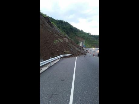 A section of the road was closed yesterday after a section of the hillside made its way on to the highway.