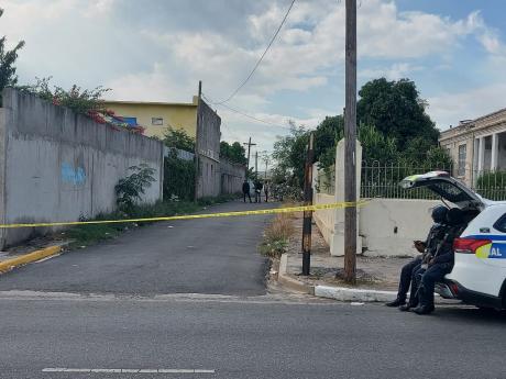 Police are currently processing a crime scene, after they were alerted to a body seen lying in a clump of bush with a gunshot wound to the head, along Eve Avenue, off West Hero's Circle Road, Kingston.