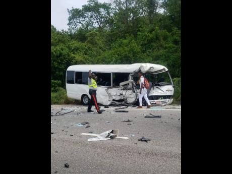 It is reported that shortly after 2:30 p.m. a Toyota Coaster bus transporting staff members of the Ocean Coral Spring Resort in Trelawny collided with a Toyota minibus.