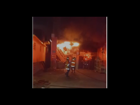 The fire which started at about 4:40 this morning made only minor damages to a small office upstairs the supermarket, which is sandwiched between the National Commercial Bank (NCB) and Courts.