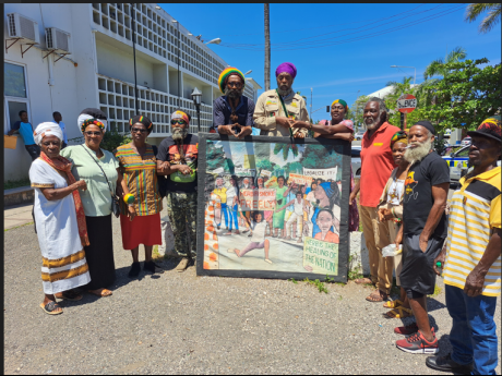 A group of Rastafarians from the Rastafari and Grassroots Ganja Association (RAGGA) staged a demonstration outside the St James Parish Court this morning to protest one of their Rastafarian brethren being arrested and charged for possession of ganja.