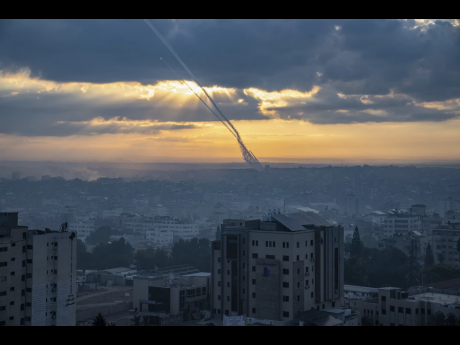 Rockets are fired toward Israel from the Gaza Strip, Saturday, Oct. 7, 2023. The rockets were fired as Hamas announced a new operation against Israel. Contributed