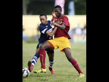 Sports No way Wolmer's! by November 21, 2015 Photo Gladstone Taylor/Photographer Jamar Purcell (left) of Jamaica College and Alphanso Gooden of Wolmer's Boys' battle for the ball during the ISSA/FLOW Manning Cup football match at Constant Spring Field on Wednesday November 11. JC won 3-1. No way Wolmer's! ... ISSA dismisses appeal against Jamaica College Story on Page 27. View the discussion thread.