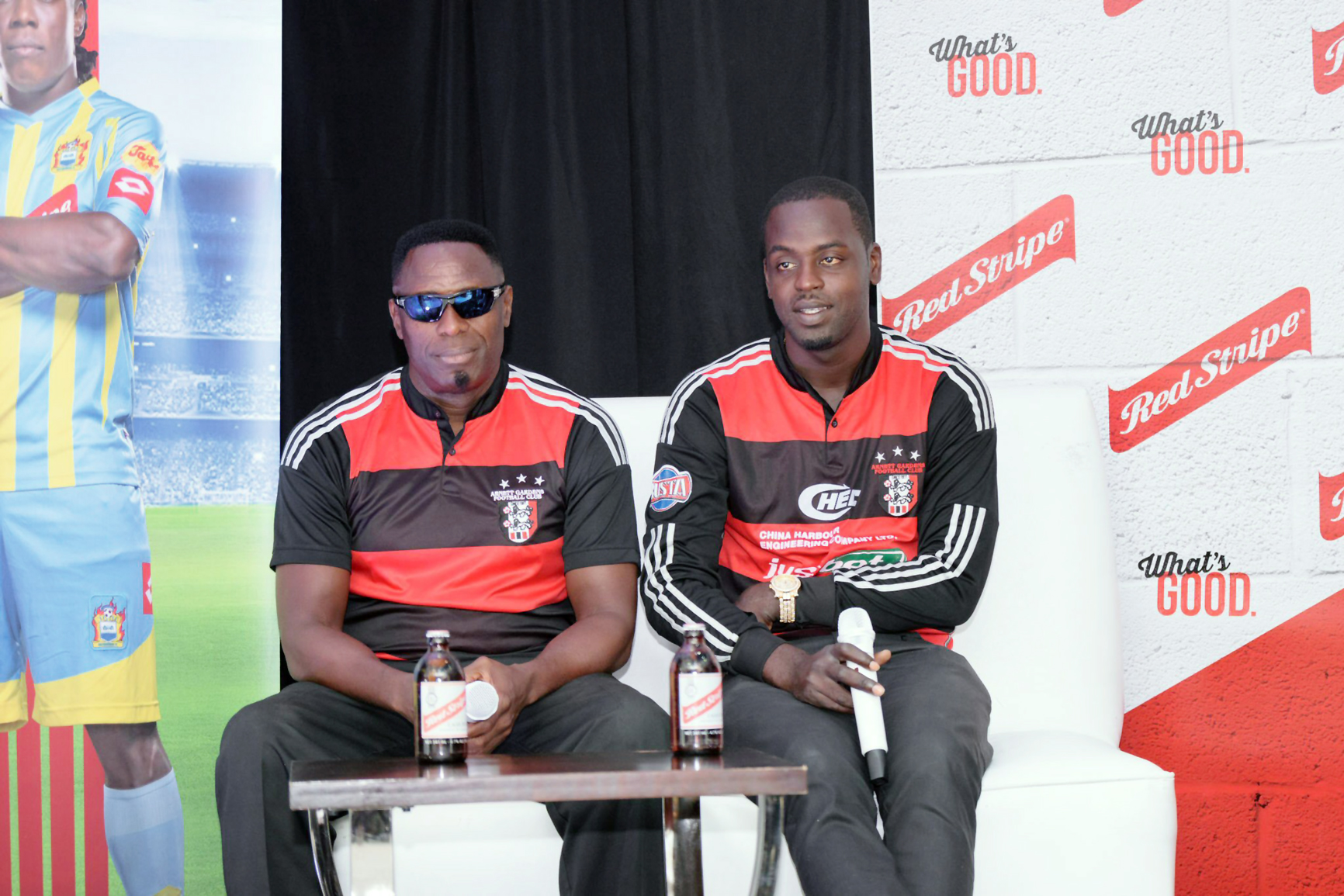 @Normal:Arnett Gardens' coach Jerome Waite (left) and the team's captain O'neil Thompson.<\n>