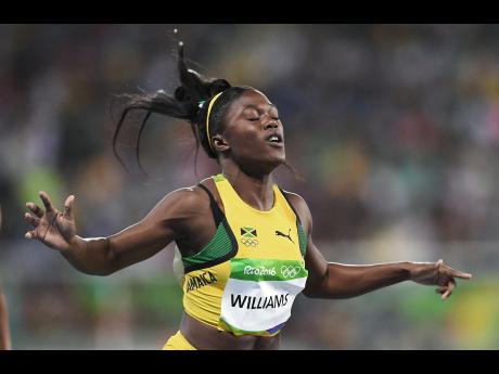 @Normal:Christania Williams reacts after competing in the women's 100 metres heats.