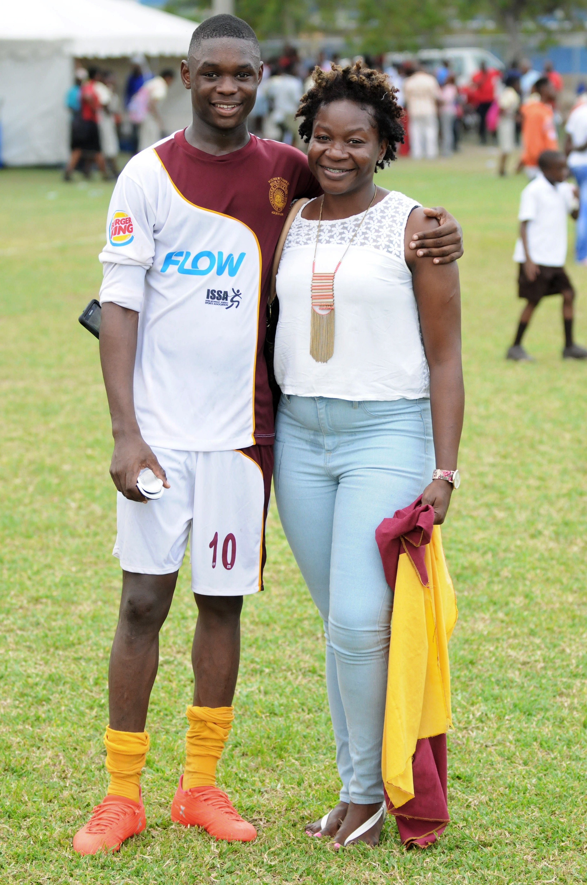 @Normal:Wolmer's Boys' star player Rivaldo English with his mother Kerry-Ann Walker at last Friday's ISSA/FLOW Manning Cup match against Camperdown at Alpha Institute. Wolmer's won 3-0.