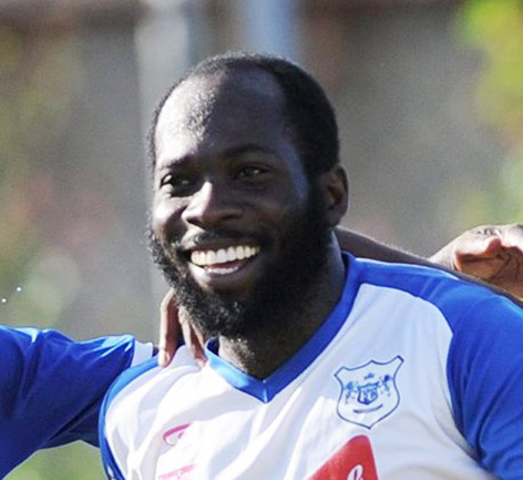 Sandals south Coast Dervin Campbell celebrates after scoring a vital goal in the Magnum/Charley's JB JFF Red Stripe Premier League playoff game at the Stdaium East field recently.