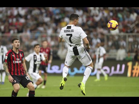 Juventus' Cristiano Ronaldo (right) scores his side's winning goal during the Italian Super Cup final match against AC Milan at the King Abdullah Stadium in Jeddah, Saudi Arabia yesterday. Juventus won 1-0. (AP Photo)